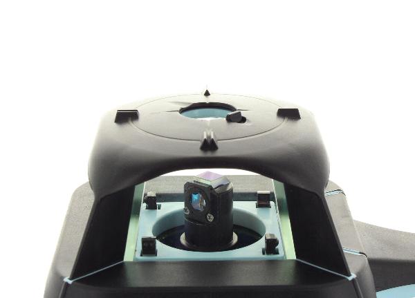 Prosta obsługa Ten laser obrotowy ma radykalnie uproszczoną obsługę. Na samym laserze znajdują się tylko trzy przyciski: włącznik/wyłącznik, przycisk zapobiegający wstrząsom i przycisk wyboru klasy lasera. Dodatkowe funkcje są dostępne tylko za pomocą pilota zdalnego sterowania. Dzięki temu okazjonalny użytkownik może pozostawić urządzenie bez pilota. Użytkownik ma wtedy pewność, że urządzenie może być obsługiwane wyłącznie w trybie samopoziomowania. Błędne pomiary spowodowane nieprawidłową obsługą są wtedy wykluczone.