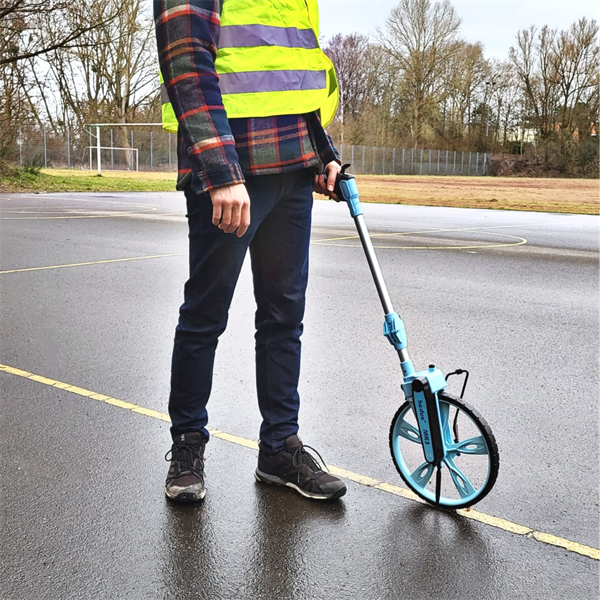 Ein sehr robustes Messrad mit ergonomischem Revolvergriff. Einfache Bedienung durch Stopptaste und Nulltaste im Griff. Geringes Packmaß von nur 53 cm durch den sehr robusten Klappmechanismus. Zuverlässiger Antrieb des Zählers über eine Getriebestange und nicht wie sonst üblich über einen Riemen.