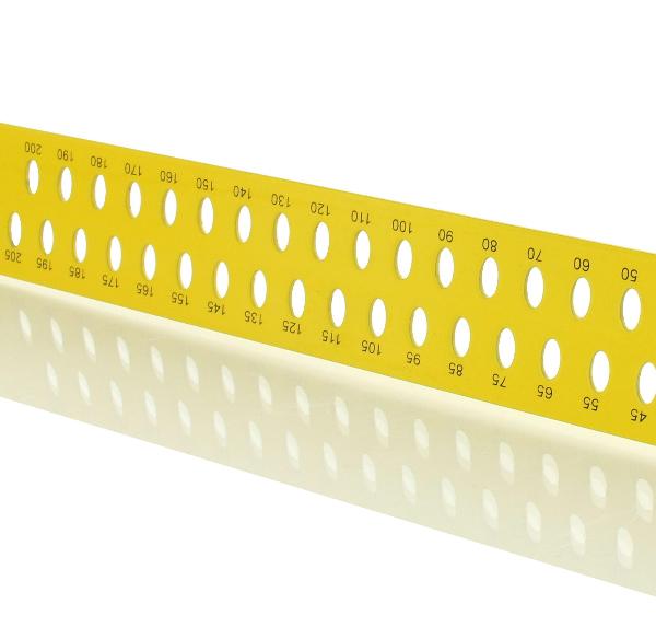 De naadloze timmermanswinkel is gemaakt van gehard staal. Dankzij de felgele poedercoating kan de mm-schaalverdeling op de lange poot zonder verblinding worden afgelezen.